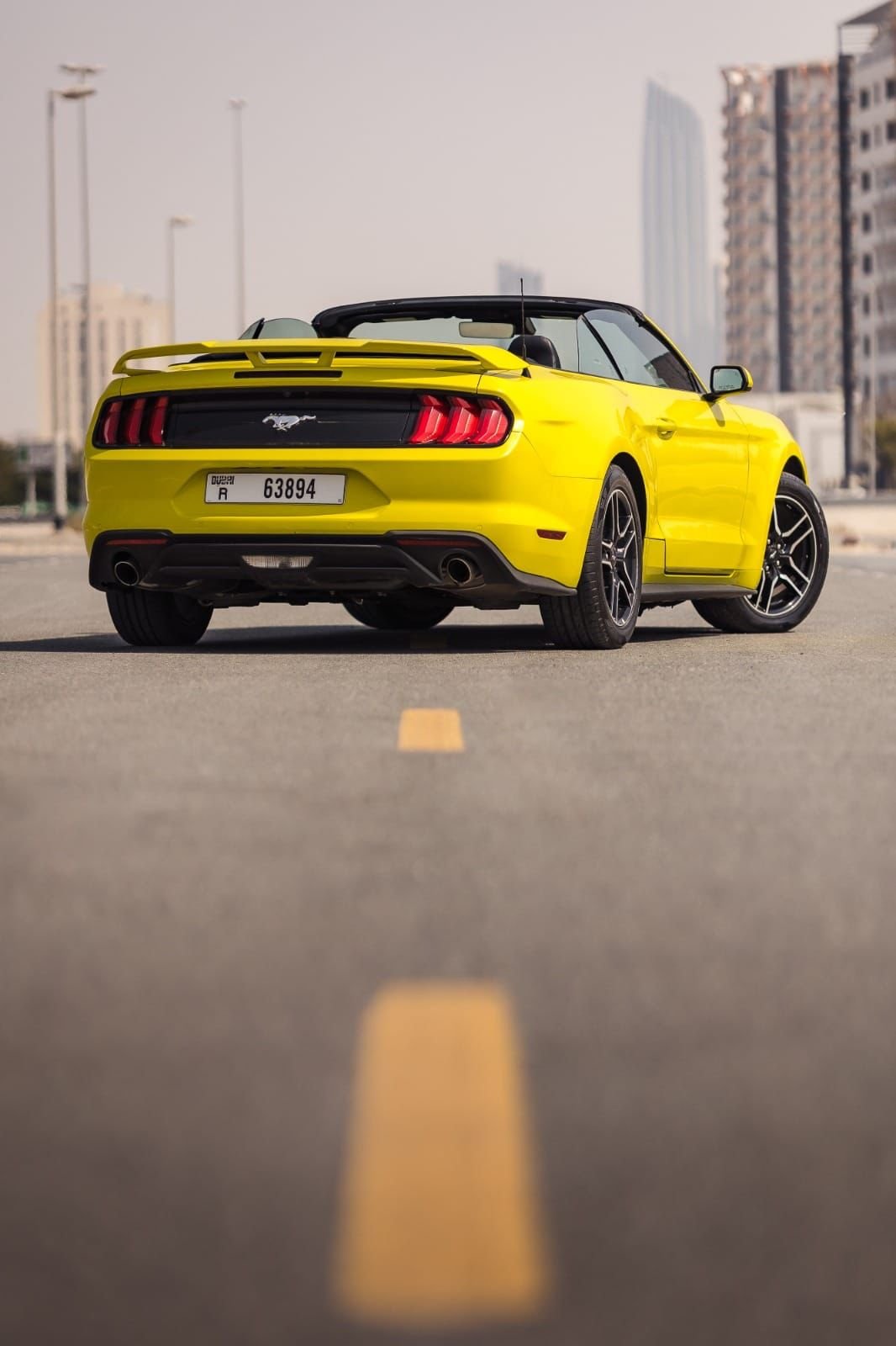 Turn heads wherever you go with the iconic Ford Mustang Convertible, finished in a striking yellow exterior that perfectly matches Dubai’s vibrant lifestyle. With its aggressive styling, open-top freedom, and sporty performance, this Mustang delivers the true American muscle experience—ideal for city cruising, beach drives, and unforgettable nights.