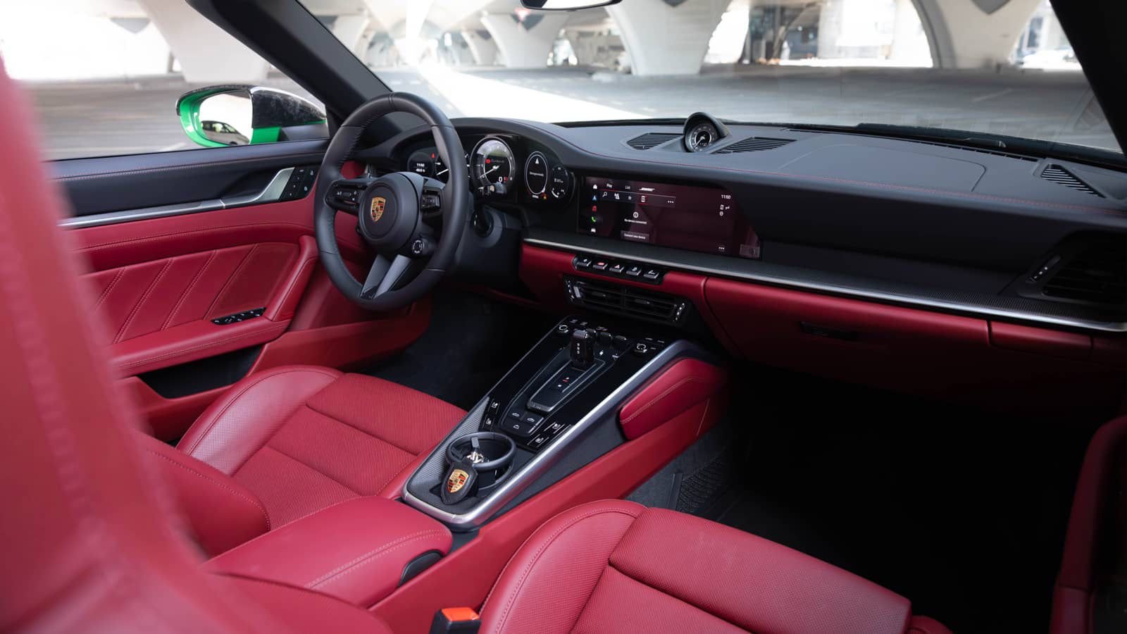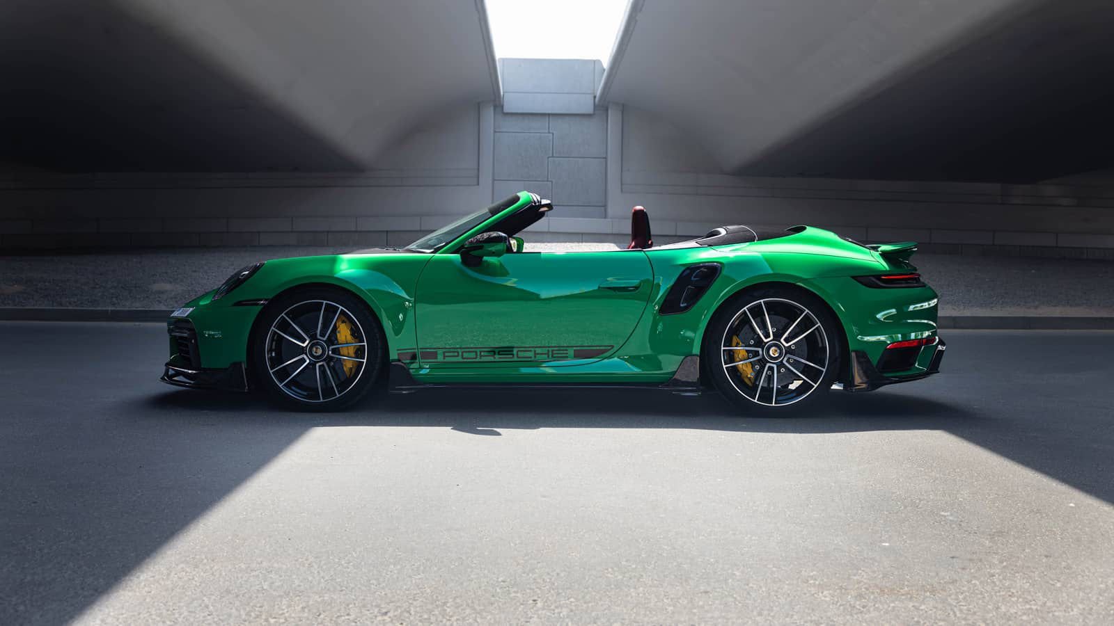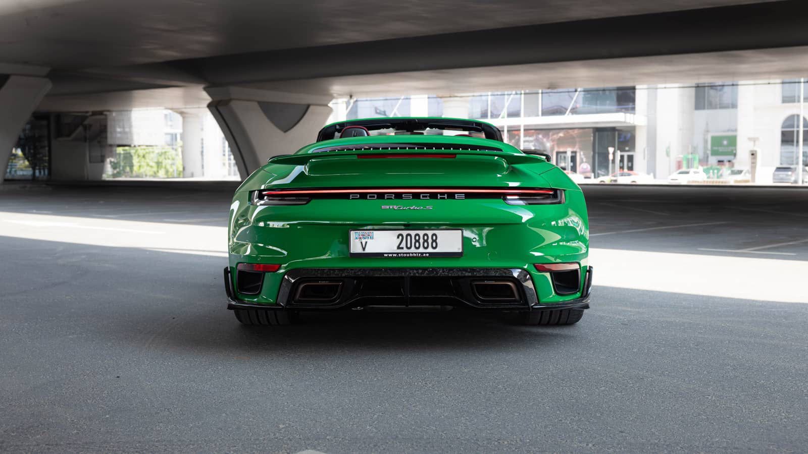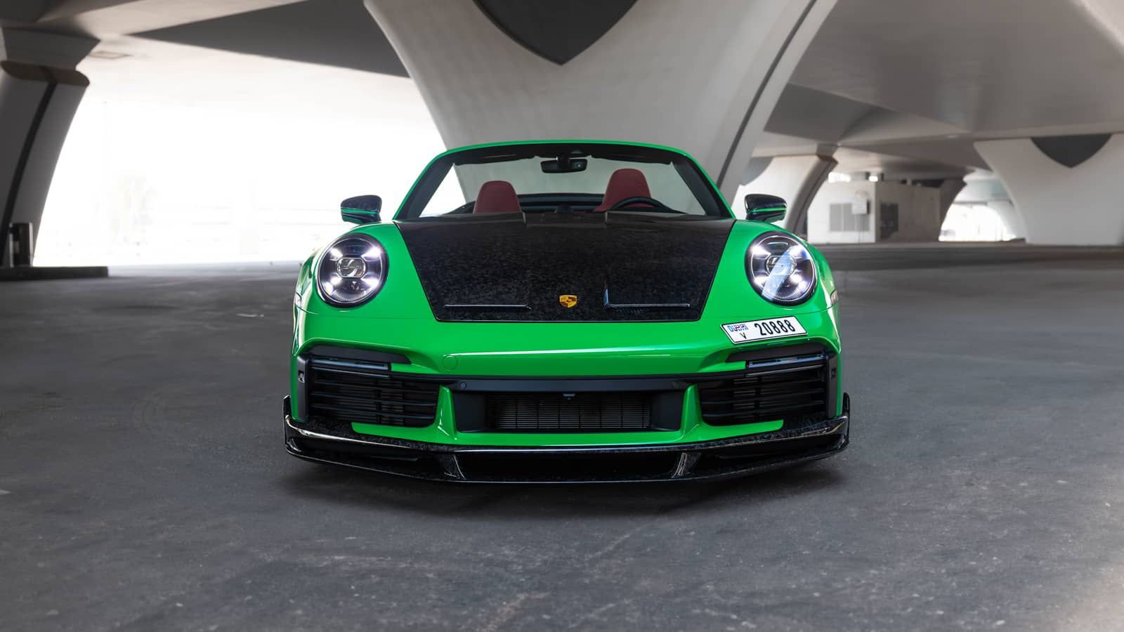 Precision meets power with the Porsche 911 Turbo S in striking racing green. An icon redefined, this masterpiece delivers breathtaking acceleration, everyday comfort, and unmistakable presence. The bold green exterior paired with carbon fiber details and red interior accents creates a perfect balance of sport and sophistication.