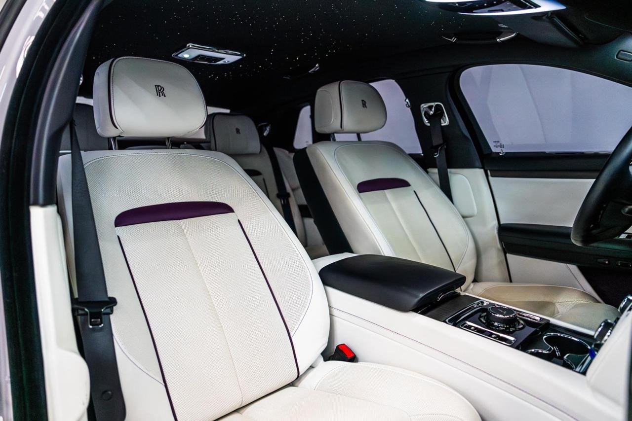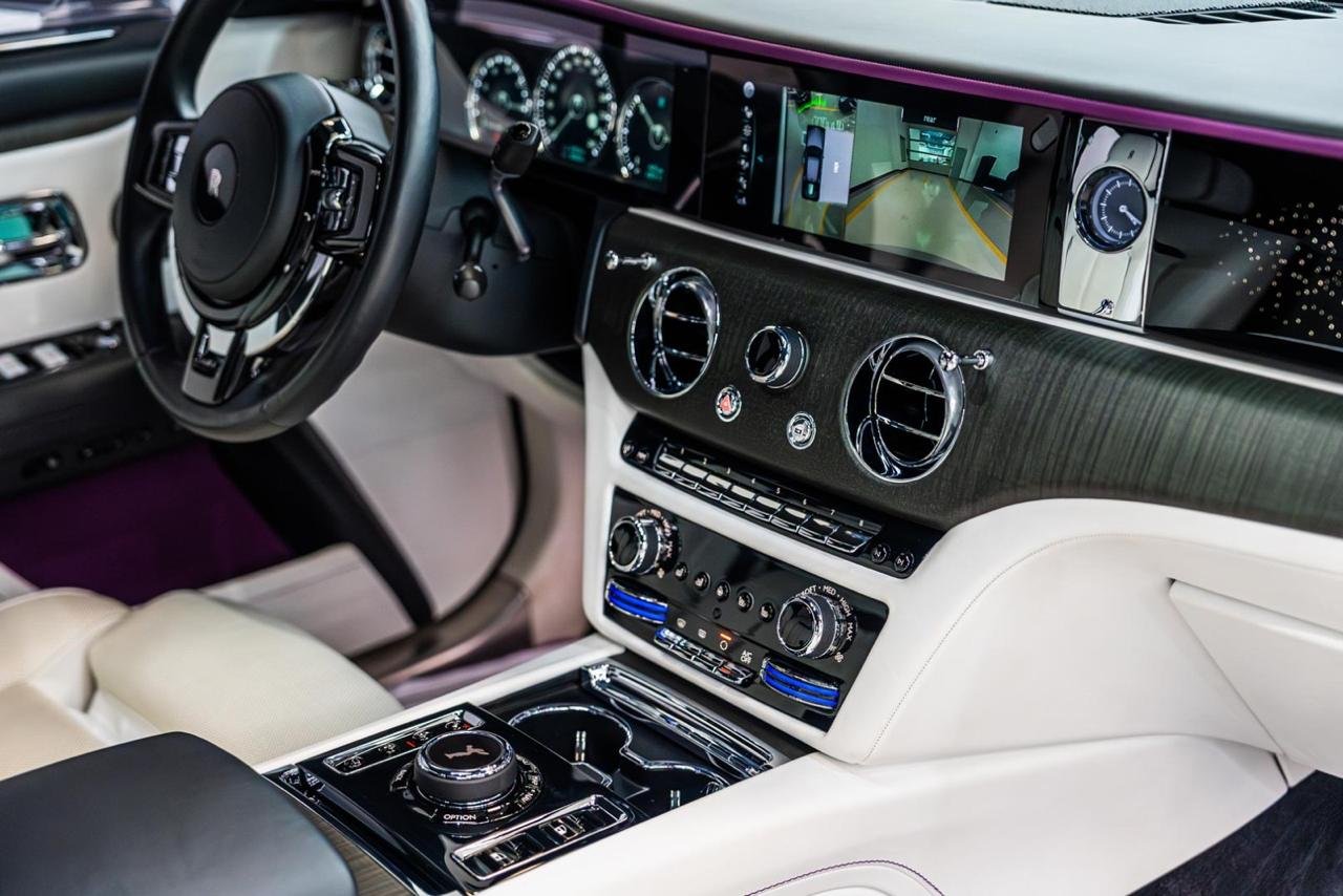 The interior of the Rolls-Royce Ghost is a sanctuary of indulgence. Step inside and you’ll be enveloped by premium leather seats, hand-stitched to perfection, offering customizable color options to match your style. For the ultimate relaxation, you can enjoy the massage seats in both the front and back, transforming any journey into a spa-like retreat. The Starry Night Headliner, with its thousands of customizable fiber-optic lights, creates a celestial ambiance, making every drive feel magical. The spacious cabin provides seating for up to five passengers, with a rear executive lounge seating option that redefines first-class travel on land. Our Rolls-Royce Ghost rent in Dubai service promises not just a ride, but an experience of pure comfort.
